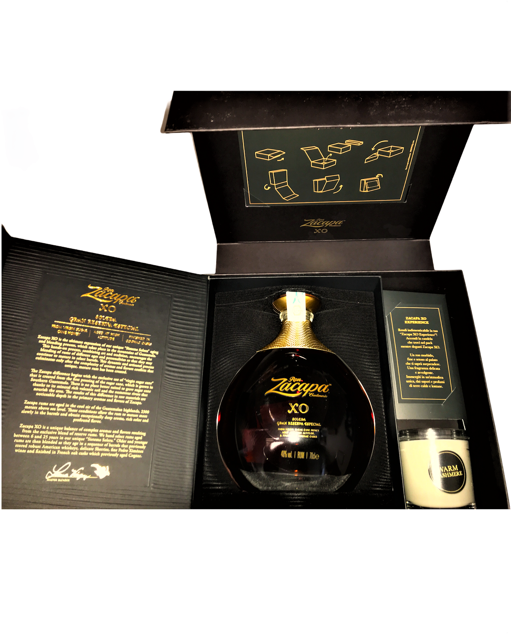 Confezione con bottiglia cl.70 + candela. Gradazione alcolica: 40% vol. Il Rum Zacapa “X.O.” è ottenuto da una combinazione dei più pregiati rum invecchiati fino a 25 anni. Il rum è invecchiato in botti di rovere precedentemente utilizzate per Bourbon whisky, Sherry e vini Pedro Ximenez. L'ultima fase dell'invecchiamento avviene in barili di Cognac Francese. Nasce così un rum con una perfetta armonia, complessità e finezza. Alla vista, color ambra scuro e intenso. Al naso, bouquet complesso ed elegante di frutta matura a polpa gialla, di spezie dolci, di cacao e di mandorla. In bocca, il sorso è strutturato, armonico, rotondo. Si sviluppa con intensità e ricchezza gustativa, chiudendo lungo su sensazioni di cioccolato fondente e di spezie.